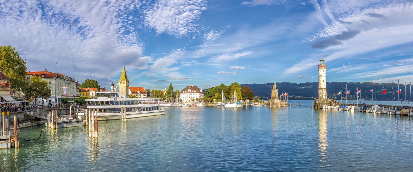 Lindau ist eine malerische Stadt in Deutschland, die im Bundesland Bayern liegt. Sie befindet sich am Bodensee, an der Grenze zu Österreich und der Schweiz, und ist bekannt für ihre wunderschöne Altstadt, die auf einer Insel im Bodensee liegt. Lindau ist berühmt für ihren historischen Hafen mit dem ikonischen Löwen und dem Leuchtturm, die zu den bekanntesten Wahrzeichen der Stadt gehören. Die Stadt hat eine reiche Geschichte, die bis ins Mittelalter zurückreicht, und war einst ein wichtiger Handelsplatz und ein Zentrum für den Bodenseeverkehr.