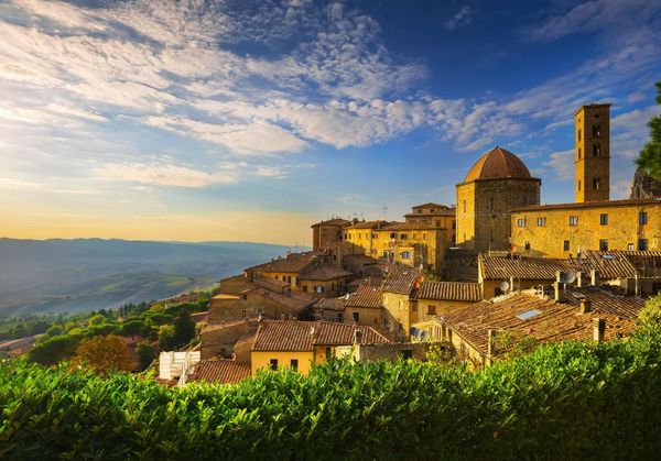 Volterra ist eine historische Stadt in Italien, die in der Region Toskana liegt, genauer gesagt in der Provinz Pisa. Sie befindet sich auf einem Hügel und bietet atemberaubende Ausblicke auf die umliegende Landschaft. Volterra ist berühmt für ihre gut erhaltene mittelalterliche Architektur, ihre etruskischen Wurzeln und die traditionelle Verarbeitung von Alabaster, einem lokalen Stein, der in der Region abgebaut wird. Die Stadt hat eine reiche Geschichte, die bis in die etruskische Zeit zurückreicht, als sie ein bedeutendes Zentrum für Handel und Kultur war. Im Laufe der Jahrhunderte entwickelte sich Volterra zu einem wichtigen Ort für die Kunst und Wissenschaft, was sich in den zahlreichen historischen Gebäuden und Museen widerspiegelt.