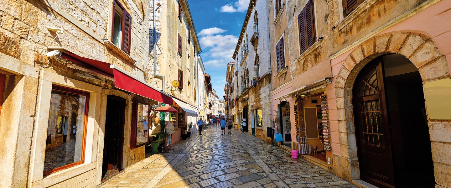 Poreč ist eine charmante Küstenstadt in Kroatien, die sich in der Region Istrien befindet. Die Stadt liegt an der Westküste der Halbinsel Istrien und ist bekannt für ihre malerische Altstadt, die von römischer Architektur geprägt ist, sowie für ihre schönen Strände und das klare Wasser der Adria. Poreč ist berühmt für die Euphrasius-Basilika, ein UNESCO-Weltkulturerbe, die für ihre beeindruckenden Mosaiken und ihre byzantinische Architektur bekannt ist. Die Stadt hat eine reiche Geschichte, die bis in die Antike zurückreicht, als sie als römische Kolonie gegründet wurde. Heute ist Poreč ein beliebtes Touristenziel, das eine Vielzahl von Freizeitaktivitäten und kulturellen Veranstaltungen bietet.