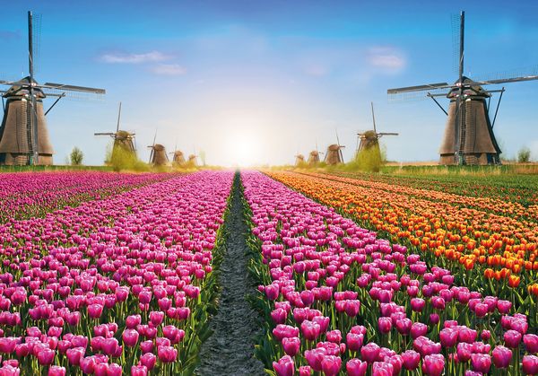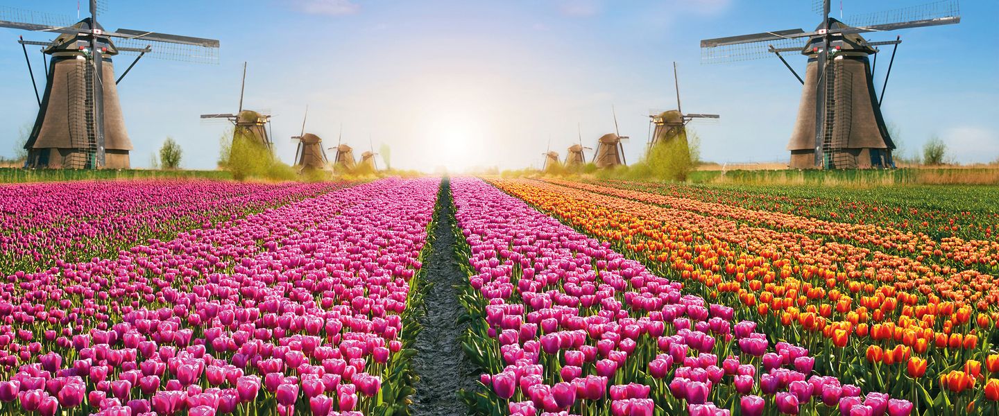 Blühende Tulpen in allen erdenklichen Farben sind im Frühling ein typischer Anblick in Holland. Die weltberühmten Gärten von Keukenhof in Lisse und der Blumencorso sind ein wirklich beeindruckendes Erlebnis!